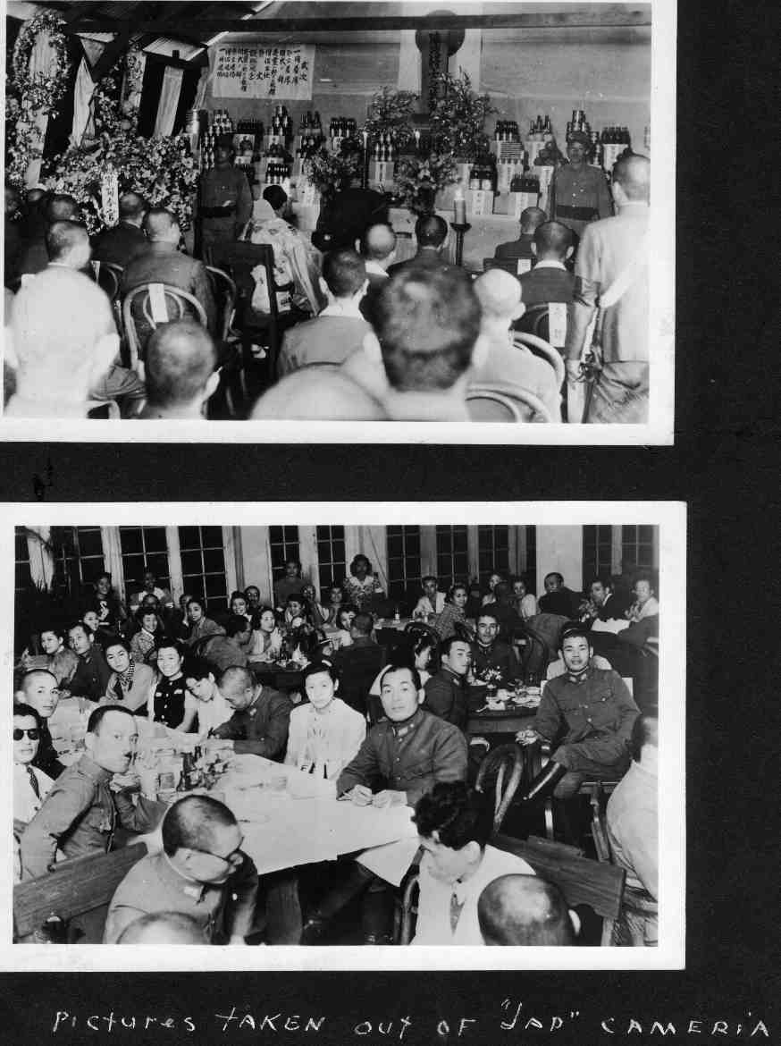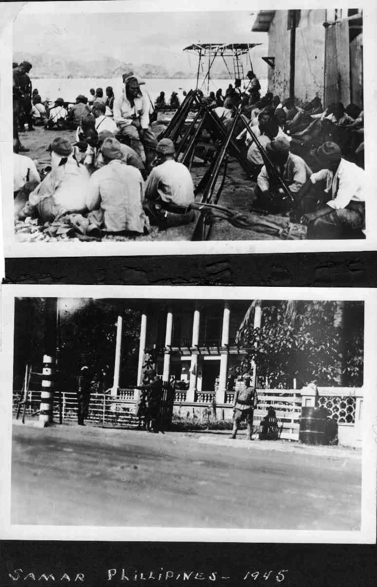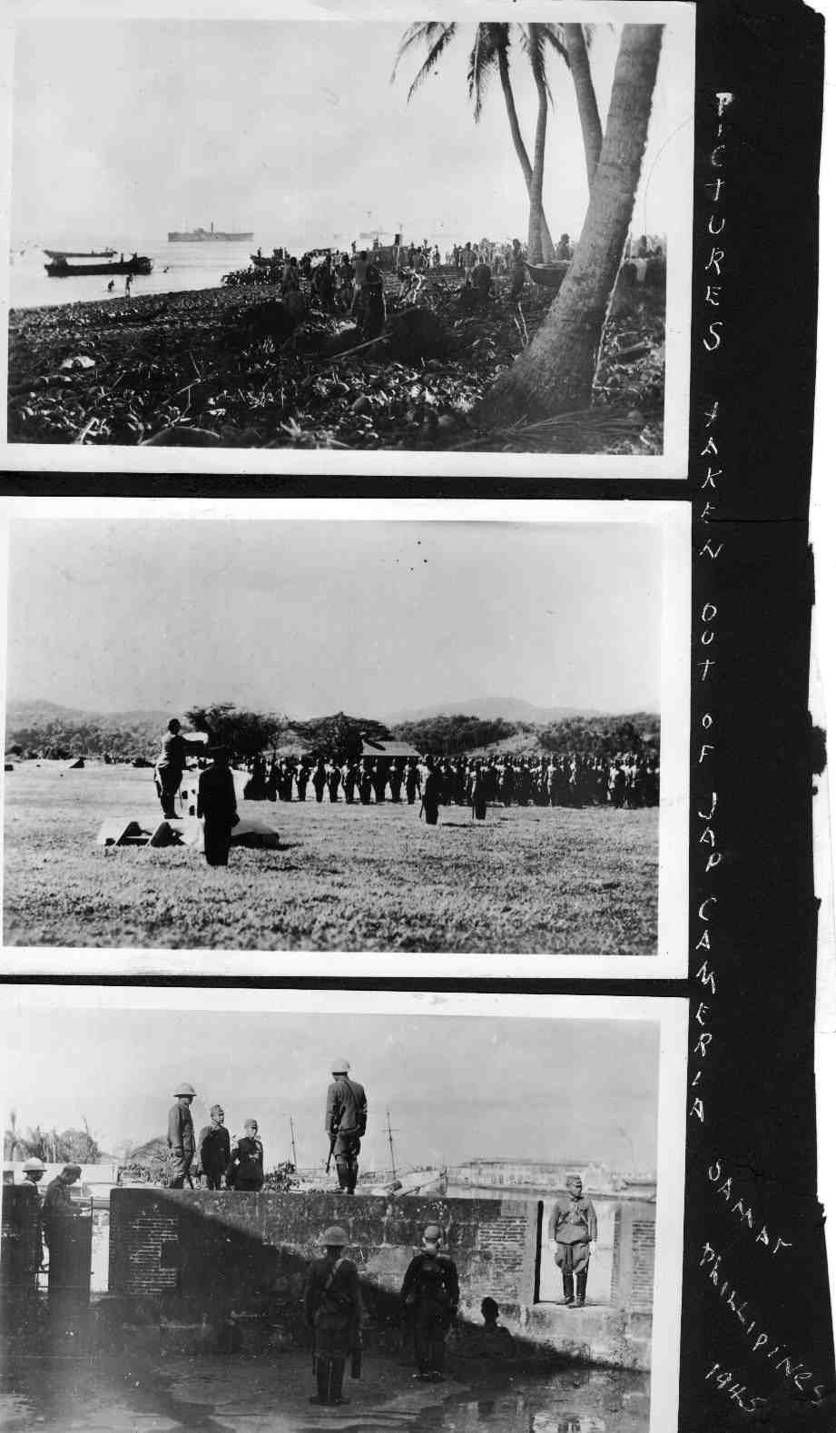 The following photos were taken from a Japanese camera during WWII. They belonged to my great-uncle Carl Ireton, although I don't know how he obtained them. I was given these photos by Al Carter, a friend of Carl's and the stepson of Carl's nephew Ralph Ireton. There are 4 pages with 2 or 3 photos per page. Several of the photos are labeled "Philippines" and "1945". Click on thumbnails below to view the full size photos. The photos on the left show elaborate parties. The pictures in the middle and on the right are labeled "Samar Philippines 1945". Another note says "Pictures taken out of 'Jap' camera".
