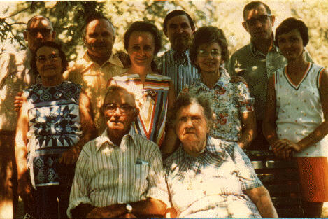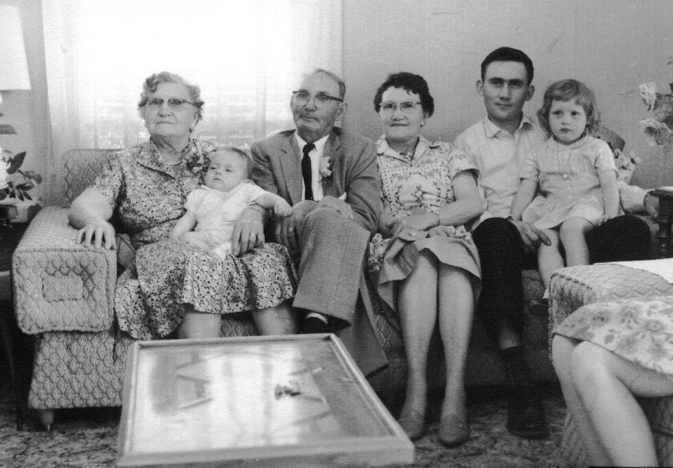 James & Elva Gregory, Frank & Mary Ireton, Charles & JoAnne Ireton, and Don and Betty Wright, Front: Rolla & Lillie Ireton |