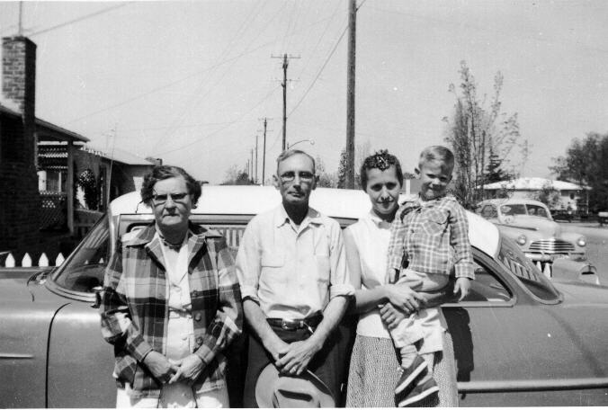 Lillie Ireton, Mike Gregory (son of Bill), Rolla Ireton, Elva (Ireton) Gregory, James William "Bill" Gregory, and daughter Heidi |