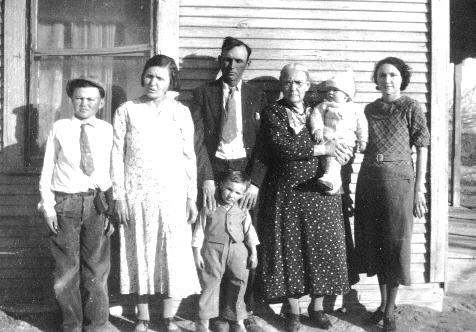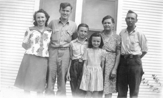 Back: Eda Ireton, Lillie and Rolla Ireton, Esther Foust, Elva (Ireton) Gregory Front: David Gregory, Betty Jo Ireton, Robert Gregory |