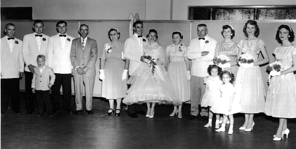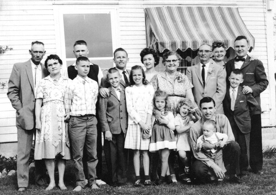 Rolla and Lillie Ireton’s 50th Anniversary. James Gregory, Elva (Ireton) Gregory, Danny Gregory, Jay Gundy, Dot Gundy, Lillie Ireton, Rolla Ireton, Larene & Frank Ireton with son Michael. Front: Robert Gregory, Thane & Louise Gundy, (unknown Gundy daughter), Heidi Gregory (daughter of Bill Gregory), Charles Ireton with son Carl |