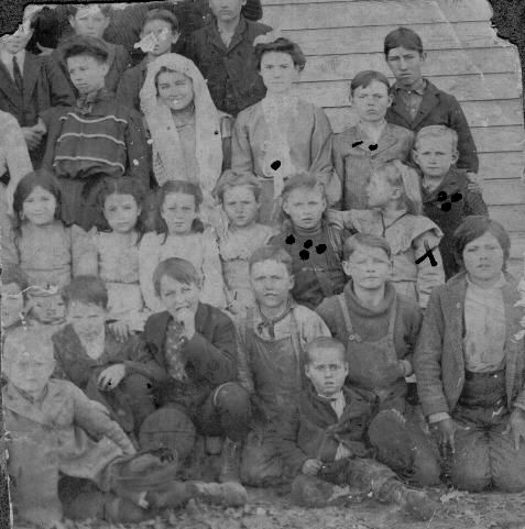 Lillie Foust Ireton with 4 dots, Earl Foust (Lillie’s brother) with 3 dots, Gladys Foust (Lillie’s sister) with X, Anna Foust (Lillie’s cousin) with 1 dot, Louis Foust (Lillie’s cousin) with 2 dots |