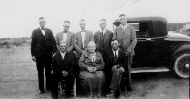 Back: Rolla, Austin, Jim, Eda & Frank Ireton, Front: Elmer, Elic, and Henry Ireton |
