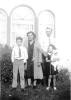 Unknown girl, Eda and Frank Ireton, and sons (bell in background is still in the family) |