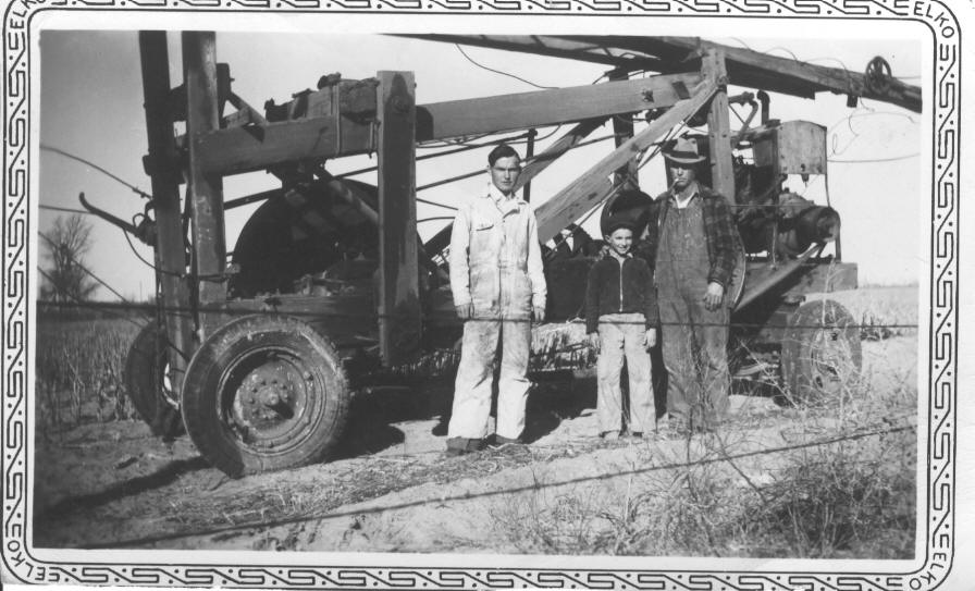 Frank, Charles, and Rolla (R.C.) with R.C.'s drilling rig near Muleshoe Texas